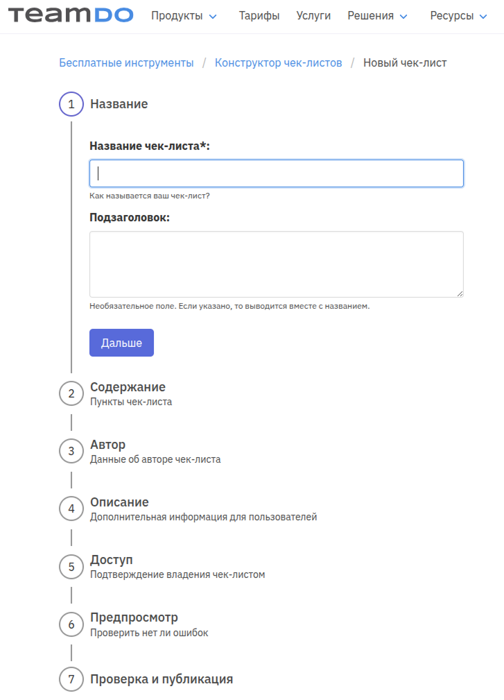 Мы используем бесплатный конструктор чек-листов Тимду. Его особенности: