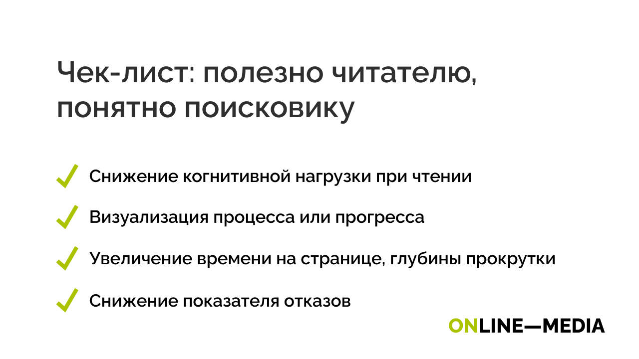 Прочитанную статью можно забыть. Красивую картинку — пролистать. Но составленный экспертом чек-лист — это готовый инструмент. Его можно распечатать, сохранить в закладки или отправить коллеге. Он обладает утилитарной ценностью, которая многократно повышает вероятность возврата пользователя на ваш сайт («Где же у меня был тот самый полезный список? А, точно, на том сайте!»).